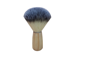 Complementing the bristles is a light brown wooden handle that adds both elegance and practicality. The wood’s natural grain and lighter tone offer a rustic yet modern appeal, perfect for those who appreciate minimalist aesthetics. The handle is ergonomically shaped, ensuring a secure and comfortable grip during use. Its smooth finish and solid build enhance both control and overall shaving experience.